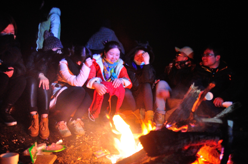 大家圍在篝火旁一起取暖,抬頭仰望星空,如仙境似夢境。