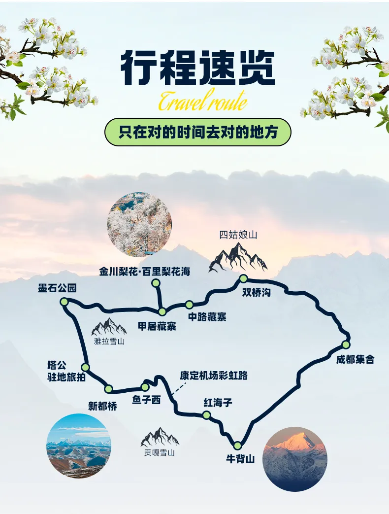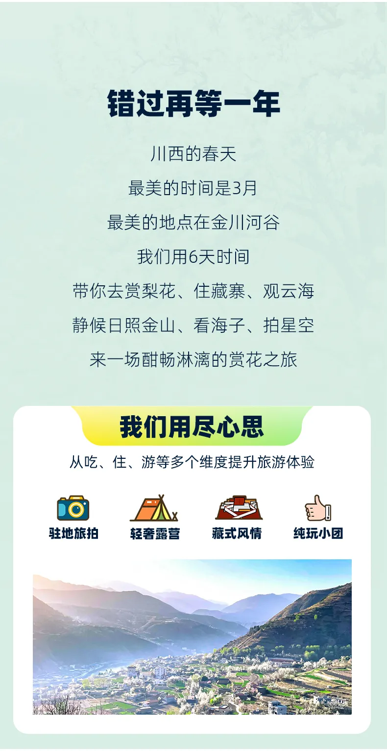 活動排期:春季限定,成都集合,成都散團,隔天發團,連發5期,期期成行。