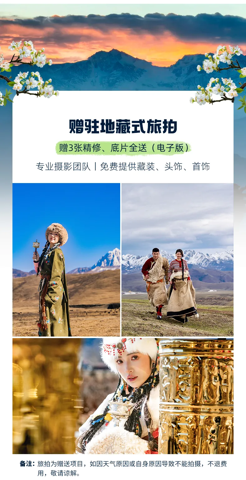 (1)駐地藏式旅拍(免費提供藏裝/首飾/頭飾,贈3張電子版簡修,底片全送);
