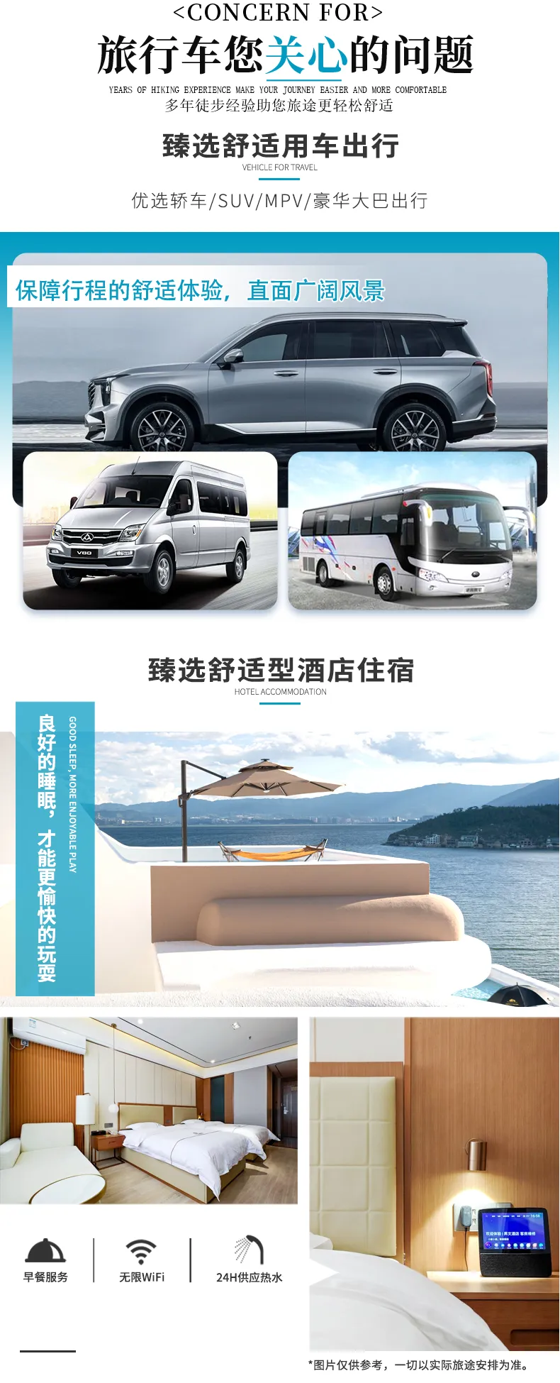 1、交通:不包含各地到達大理集合、麗江散團的往返大交通費用(如:機票和高鐵火車票等,提前預定通常折扣都會很低);