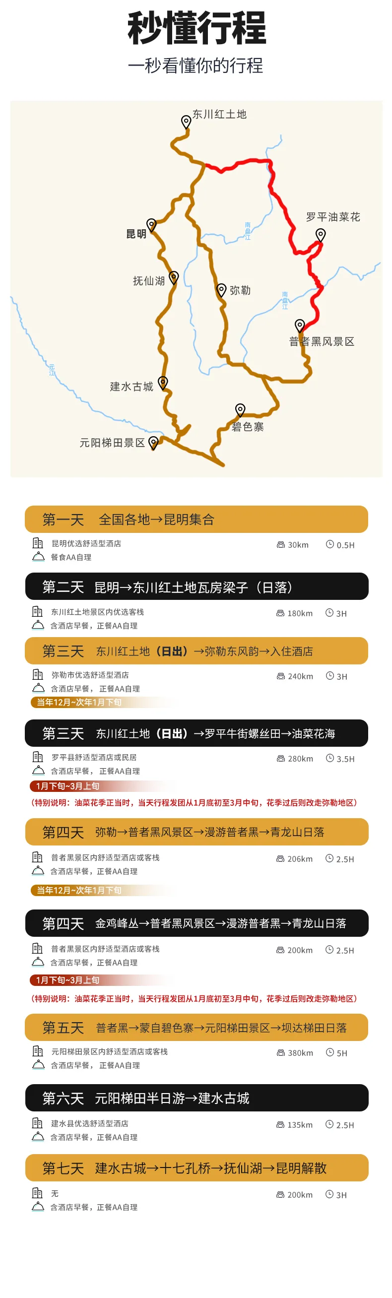 (特別說明:油菜花季正當(dāng)時(shí),當(dāng)天行程發(fā)團(tuán)從2月初至3月中旬,花季過后則改走彌勒地區(qū))