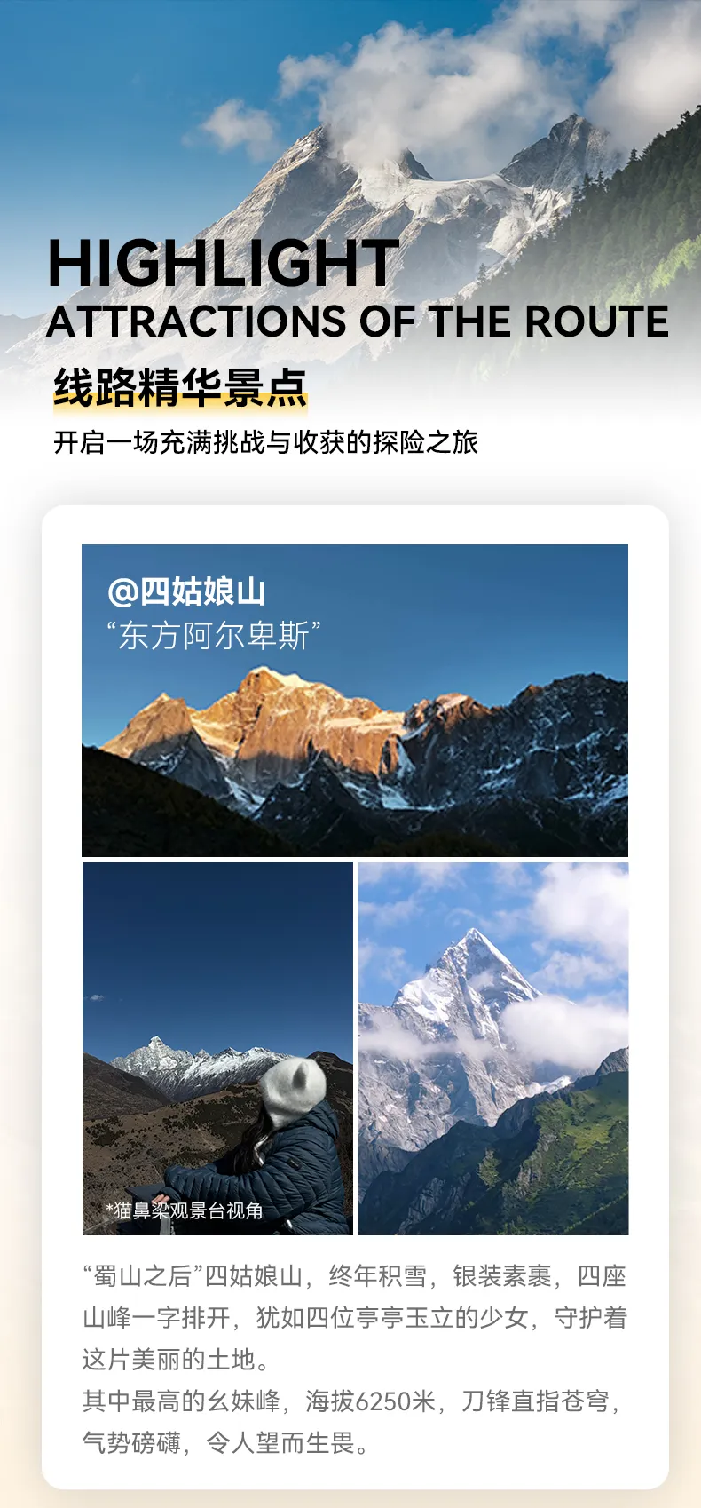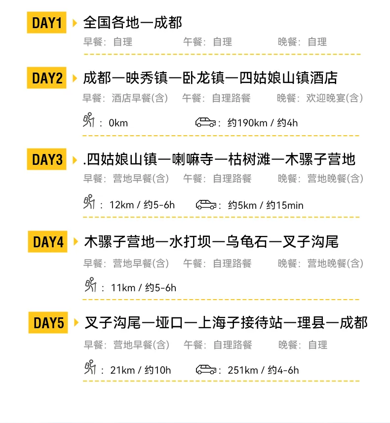 活動團期:全年組隊,D1為成都(集合日)(全天抵達入住酒店即可),節假日略有調整。