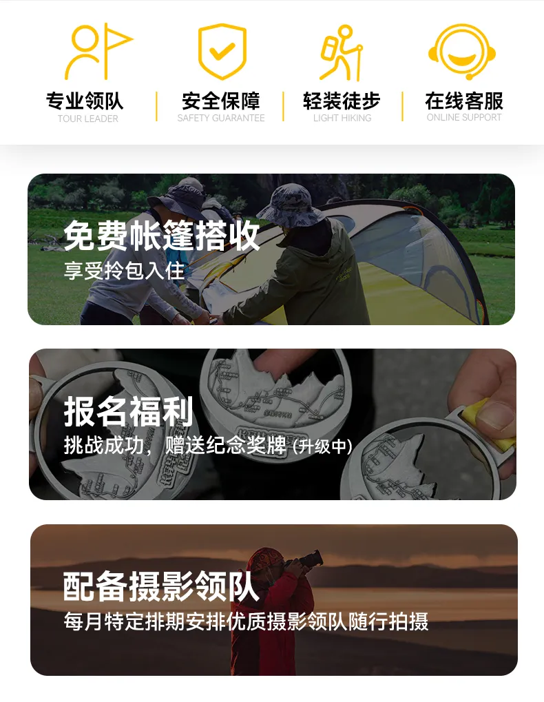 2.無嚴重高山反應及心、腦、肺,精神疾病,體能良好的戶外愛好者;鑒于戶外旅行需要參加者具備良好的身體健康條件;