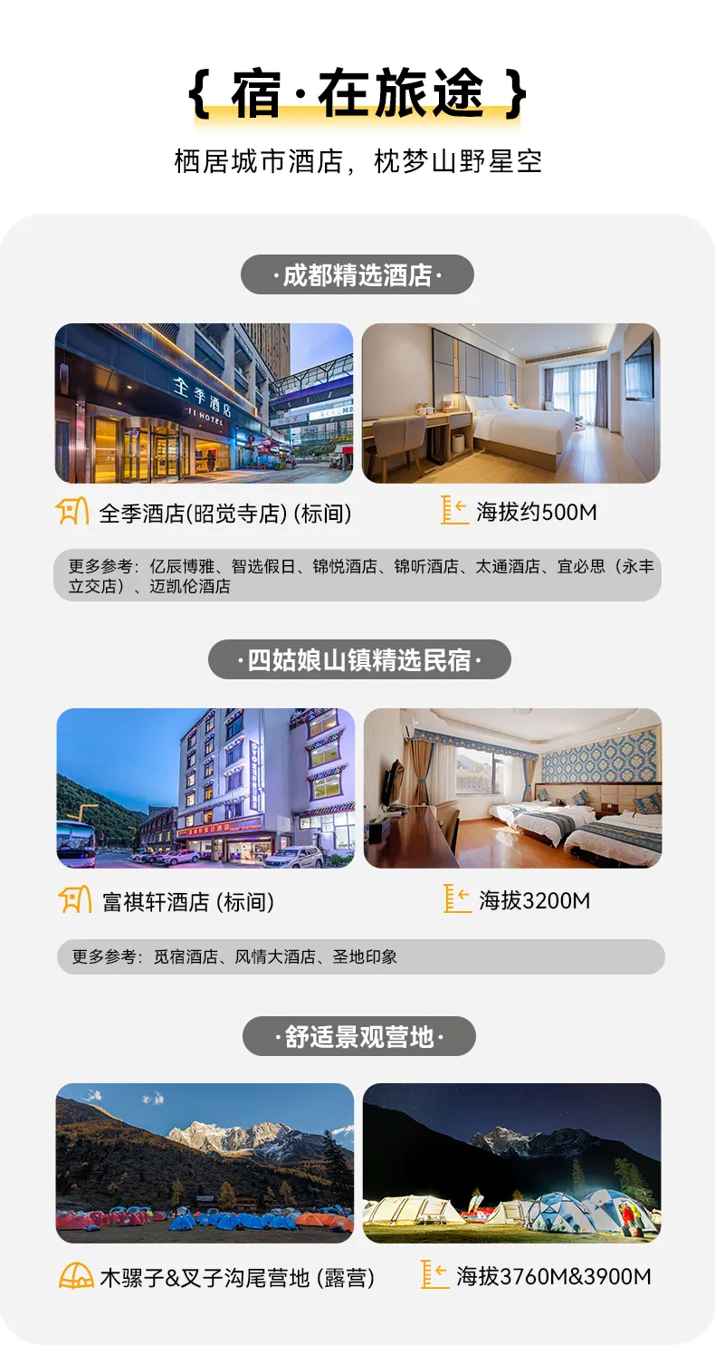 (其中:①集合日成都商務酒店住宿1晚;②四姑娘山鎮酒店標間一晚;