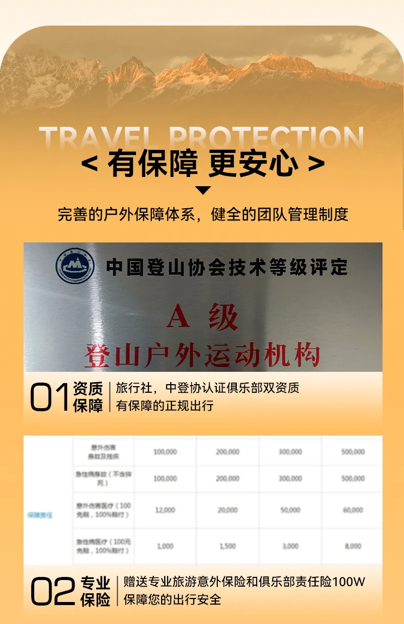 1.保險:贈送購買專業旅游意外保險和俱樂部責任險130W;