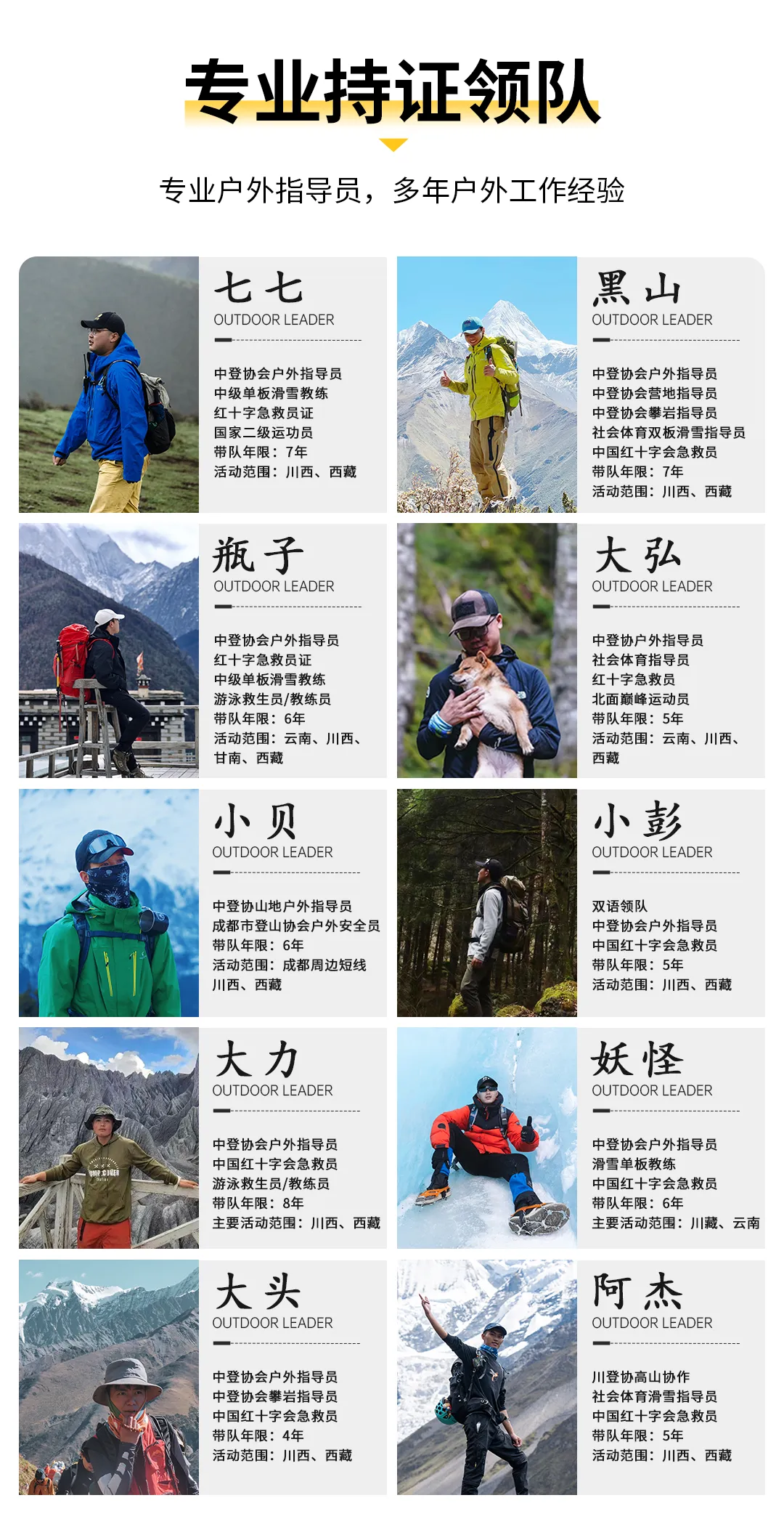 5、領隊:戶外專業認證領隊;領協比1:8;