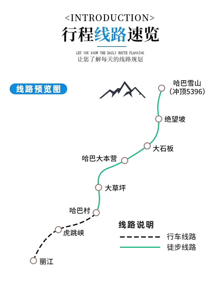 哈巴大本營---沖頂5396米---哈巴村(徒步10km 用時(shí)約10h)