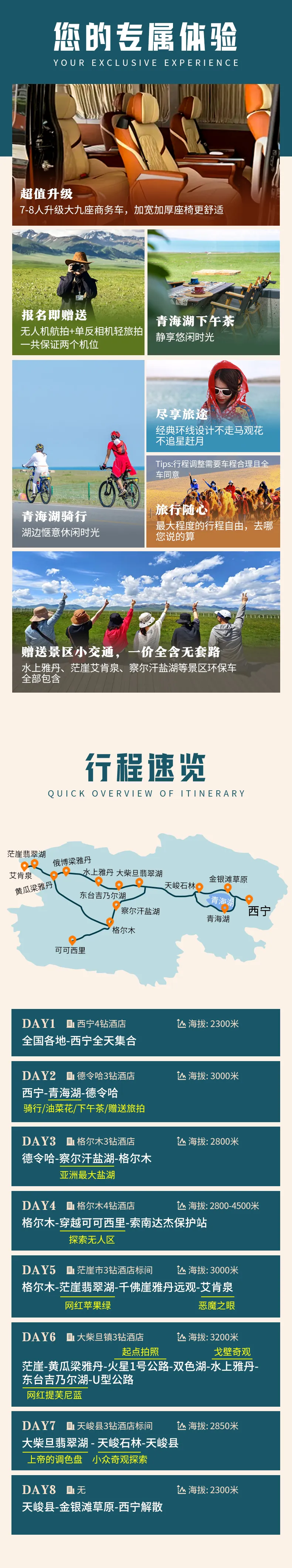 西寧---(170km,約2.5h)青海湖騎行/下午茶/小眾觀景點(300km,約4h)---德令哈
