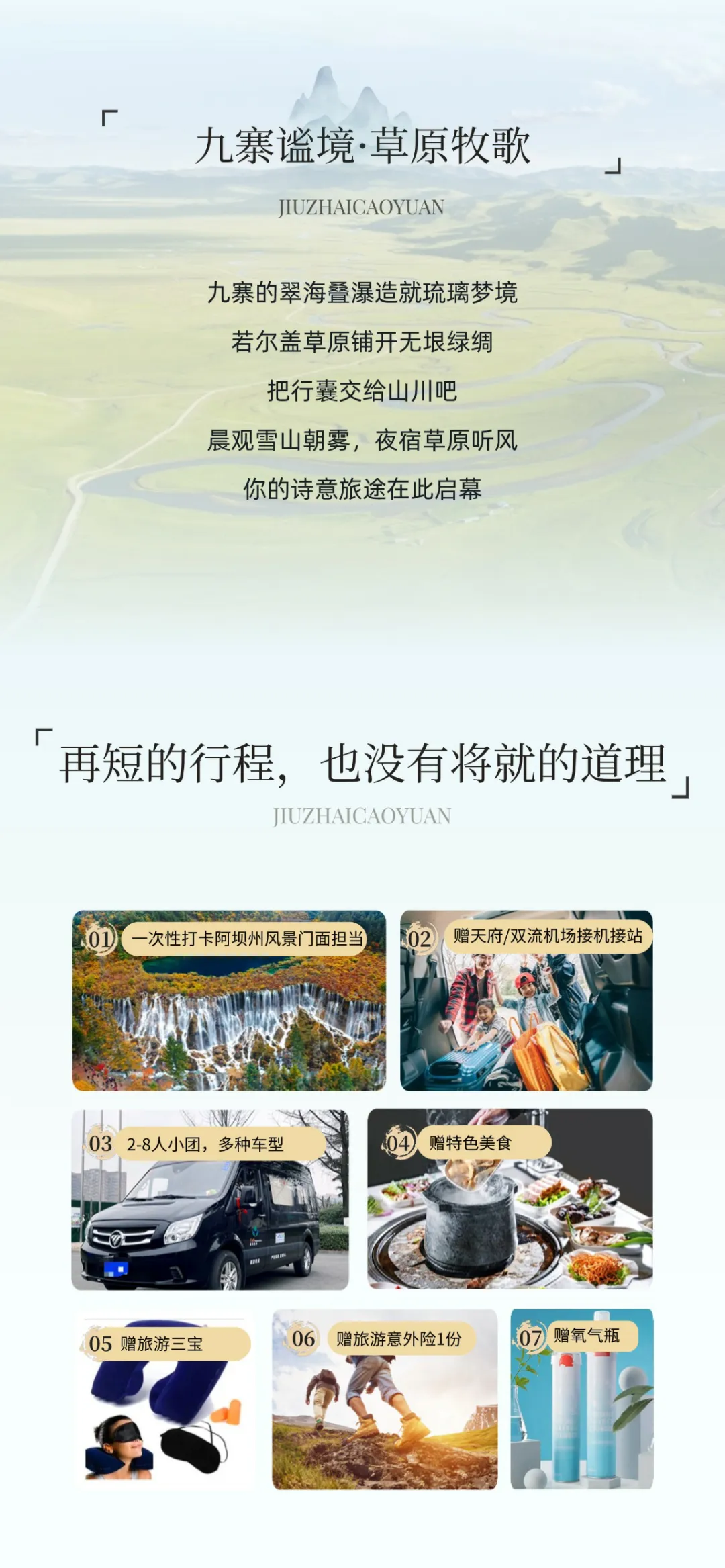 5. 九寨溝景區內旅拍(底片全送,精修2張電子照片,不含妝造,如需妝造或升級服飾自行付費)。
