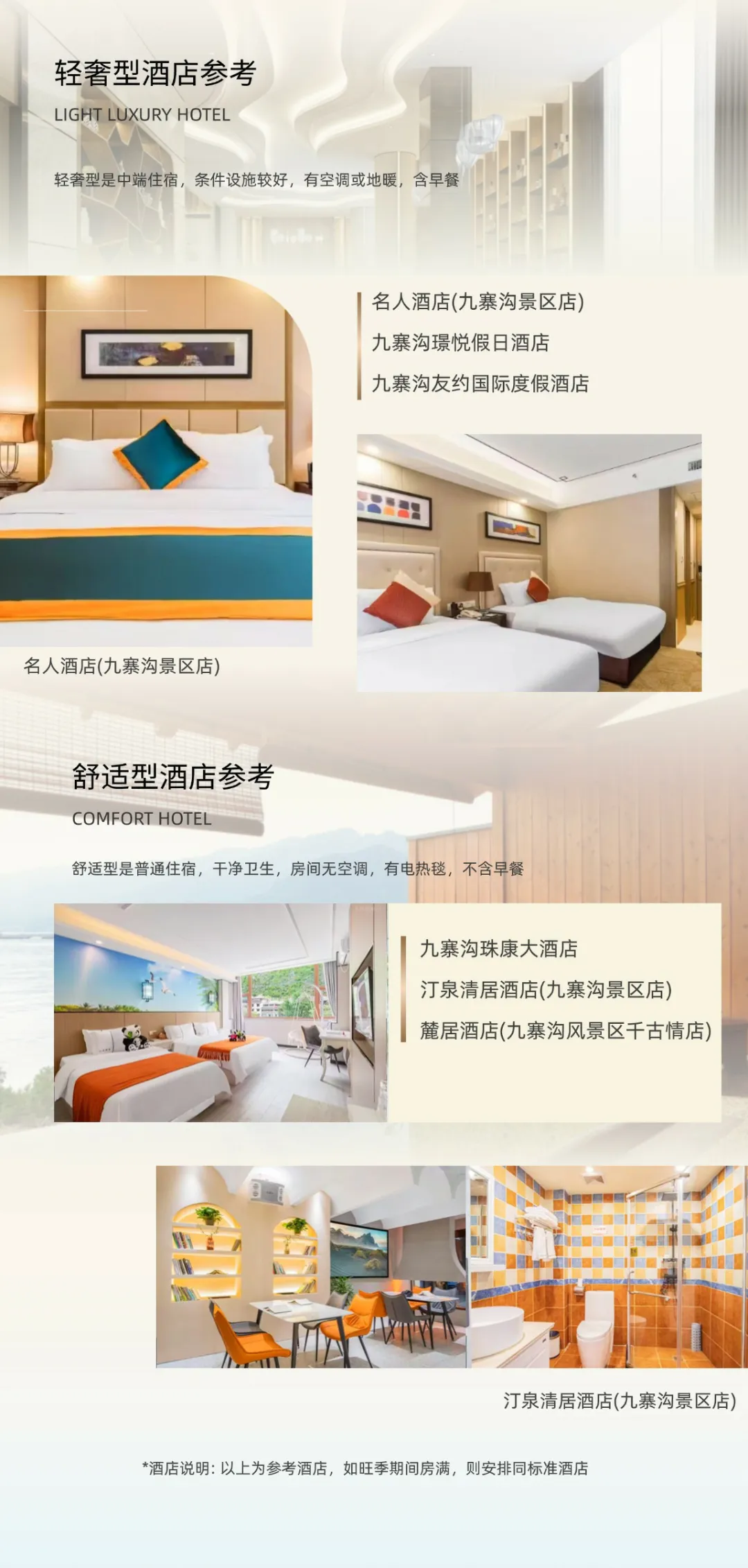 6、本線路地處偏遠,住宿條件和數量均非常有限,與城市不能相比,旅游旺季出游人較多,如套餐內酒店入住滿了我社則安排其它同級酒店,且旅行社默認安排雙床房,如需大床,旅行社盡量安排但不保證,請以實際入住的為準,敬請理解!