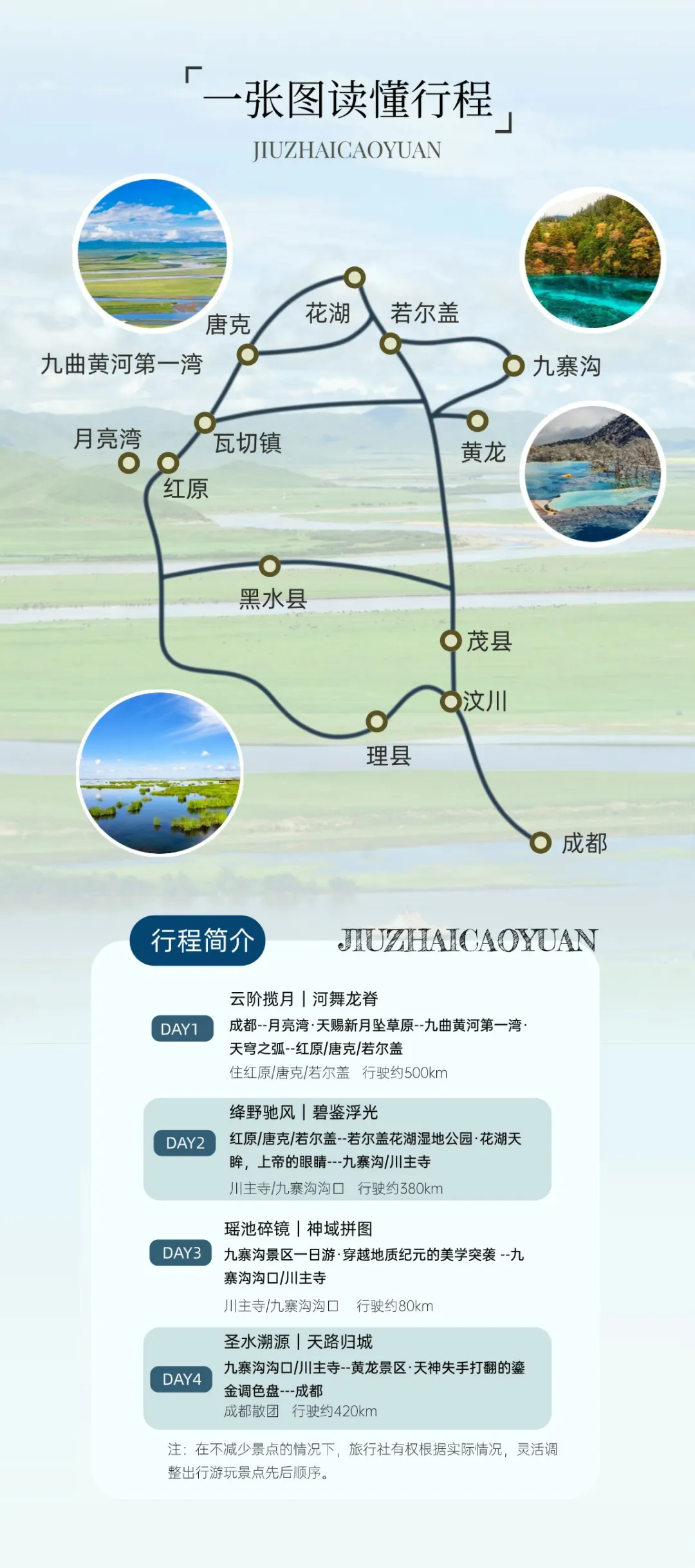 九寨溝---黃龍---成都(約400KM,車程約8H)