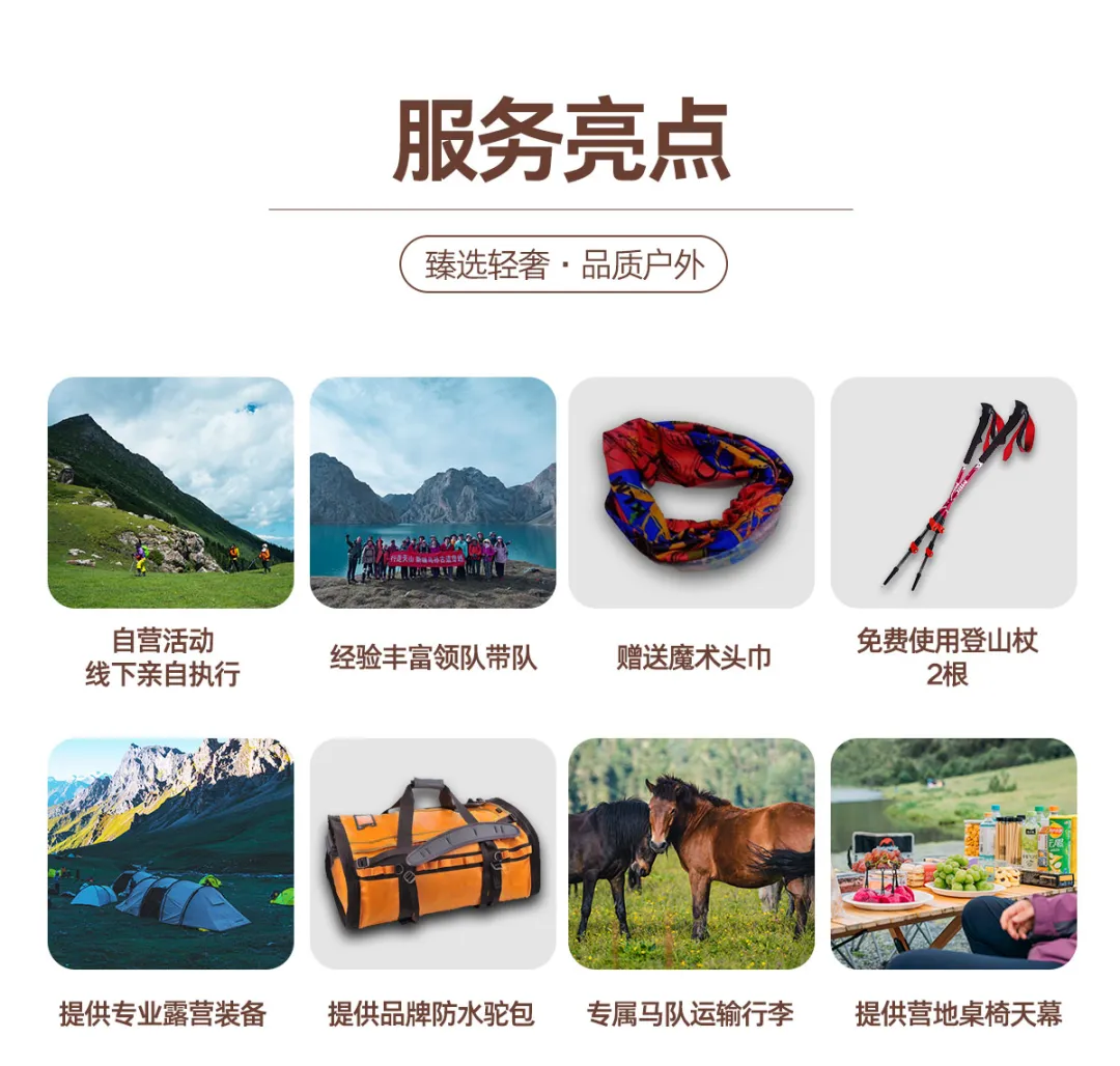 5、徒步行程部分道路險峻,非特殊情況切勿騎馬。且如需騎馬,產生的費用、安全相關問題均需自行承擔,與組織方無任何關系;