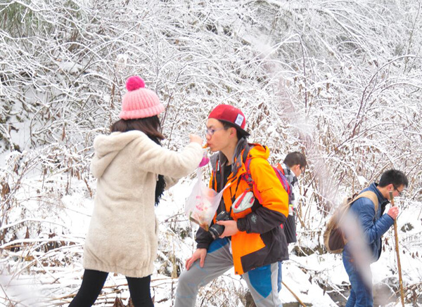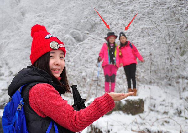 為了拍照,大家伙也是拼了,都往雪里鉆。