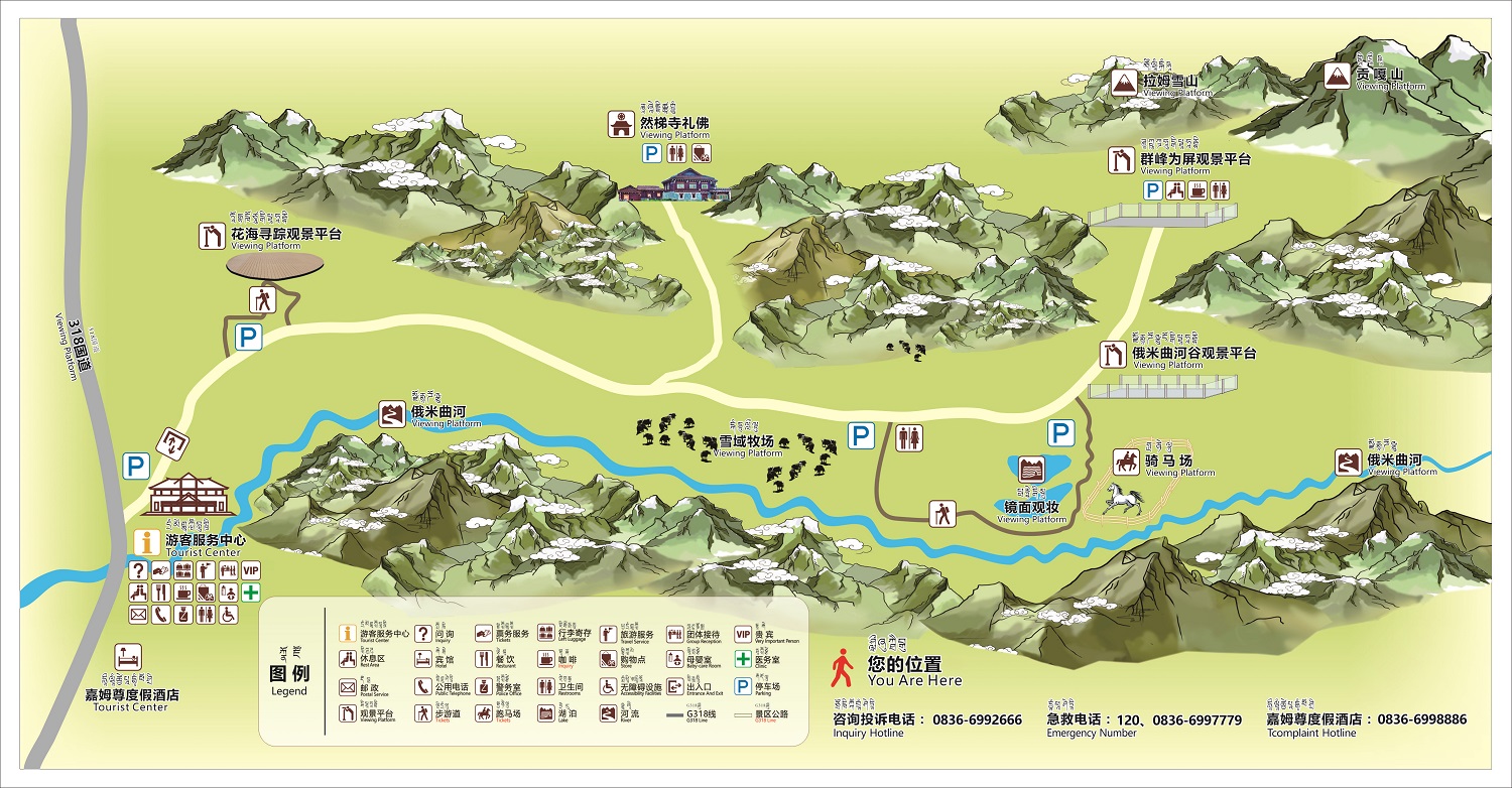 6. 游覽中如發生急、難、險、困等事件,請撥打:辦公室電話:0836-6997779,客服中心:0836-6998881,景區咨詢:0836-6992666,緊急救援:0836-6997779