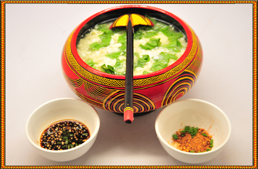 連渣菜是一道很有彝族特色的風味湯菜。將黃豆用石磨磨成漿啊,放菜葉,點酸水制作而成,可吃原汁原味,不放任何佐料,也可用湖海椒面等作料蘸水澆在連渣菜上面吃。