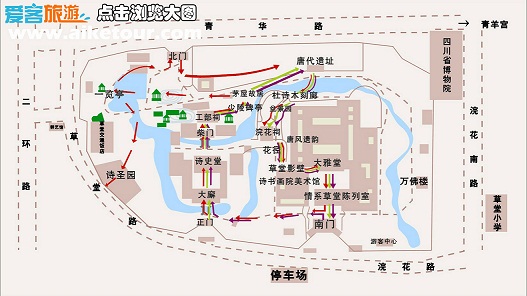 【臥龍甘海子徒步1日游】徒步于熊貓的故鄉(xiāng),探尋原始風(fēng)景之美愛(ài)客純玩為您提供杜甫草堂平面地圖: