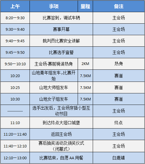 賽道:白鹿鎮——大埡口(爬坡賽),比賽路段長7.5公里;